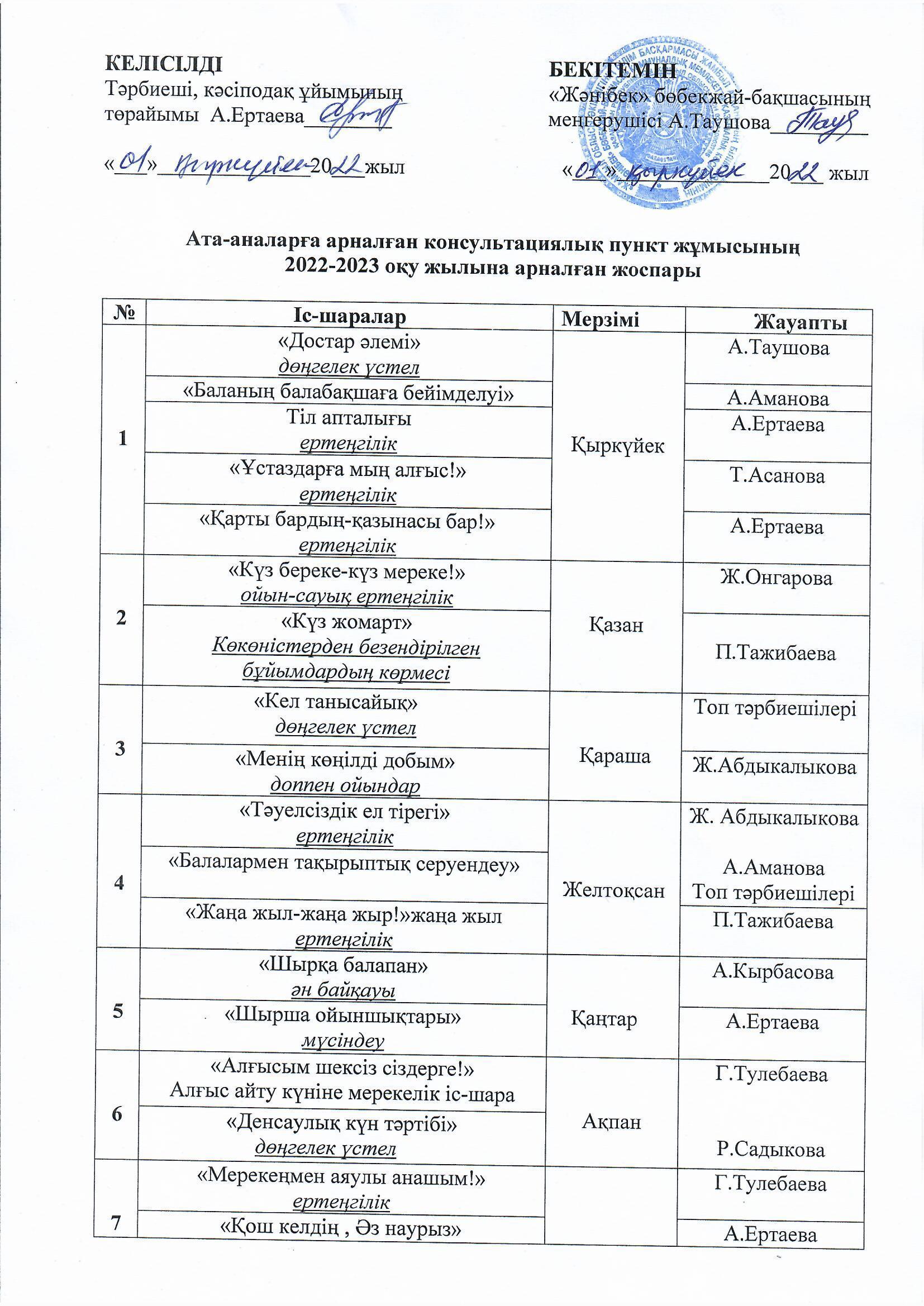 2023-2024 оқу жылына арналған консультациялық пункт жұмысының